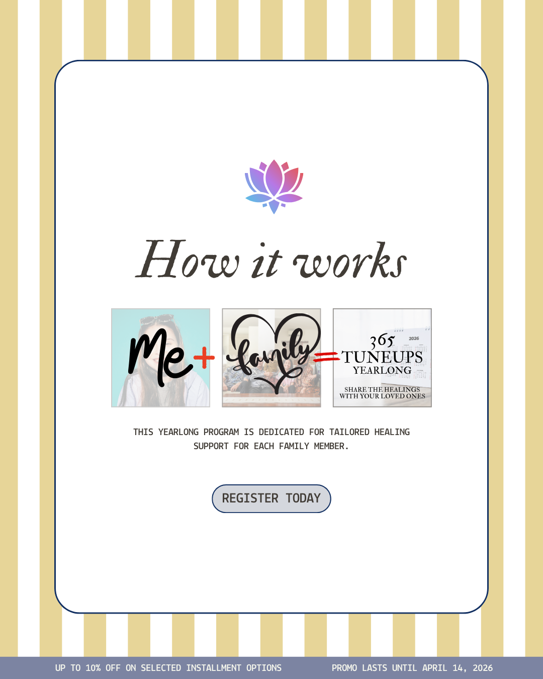 Should I get a Tuneup or a Regular Bundle session? If you have moderate/severe conditions (ex. trauma, depression, gastro-intestinal issues, cancer, chronic stress, migraines) or areas of focus of healings, then the Regular Bundle Packages would be a better fit. You can utilize the Yearlong Tuneup as an add-on for one of your weekly /monthly schedule.